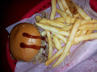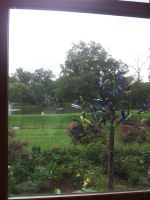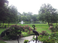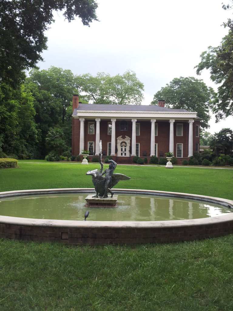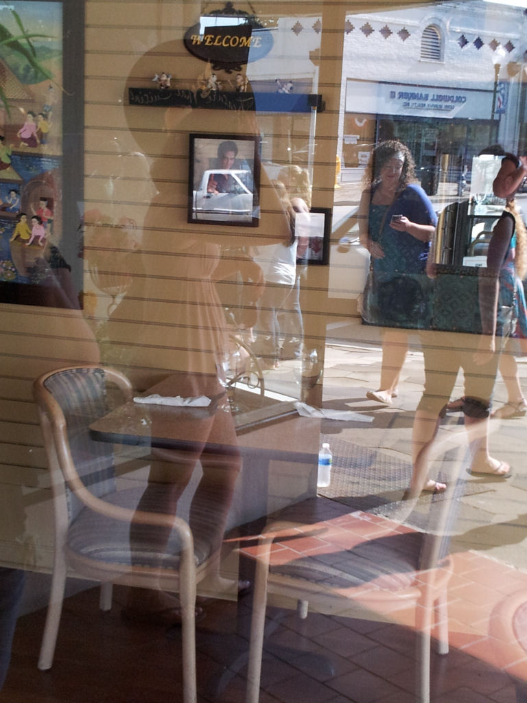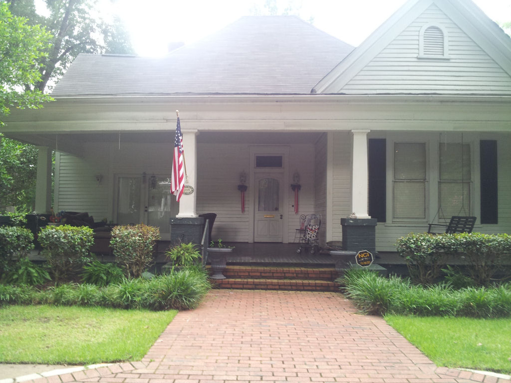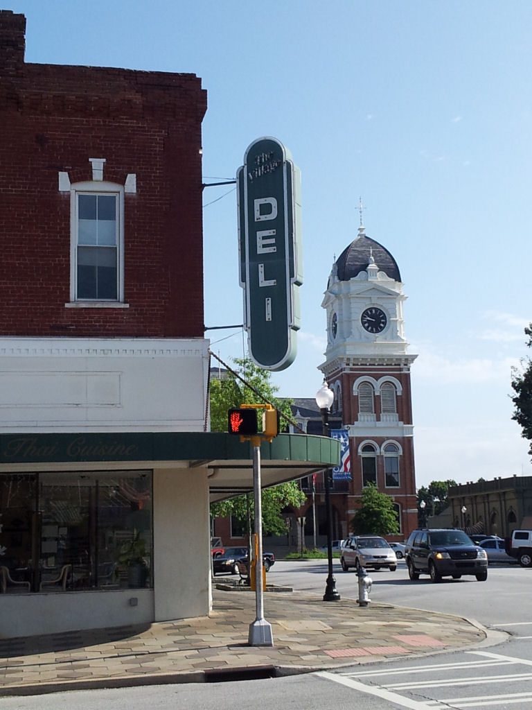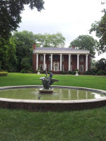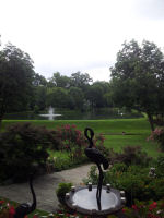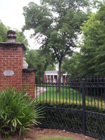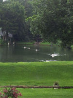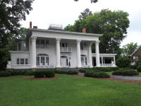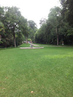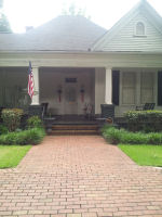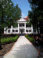 Anyway, here are some fun pictures (most you will recognize from the show itself) You can see the side of the courthouse (this is also the same courthouse that was used in the movie Footloose). You can see some shots of the park in the center of the town- where many episodes were filmed. There is a side view of the Mystic Grill (you can see the alley down below- where a TON of scenes from TVD were filmed) and at the time of our tour the "Mystic Grill" was fake! Seriously! It was only an empty building. However, they were in the process of making it a "real" restaurant which from my understanding is to open this Fall 2013. You can see a picture of Ian's (Damon's) favorite Thai restaurant he always eats at during filming- and his favorite table! (They even hung a picture of him up over the table.) Along with all of the characters houses (Elena, Bonnie, etc- with the only exception of the Salvatore Brothers house) we got a behind the scenes tour of the infamous "Lockwood Mansion". I'm not sure if the pictures do it justice or not as it almost felt like you were walking into a fairytale it was so beautiful! In one photo we were standing on the steps of the Lockwood Mansion and looking out at the driveway going to the street. You can see the magical beauty of the backyard, the lake filled with REAL swans and the gardens- where many of the casts interviews took place. We also just couldn't resist and took a picture of the real owner of the Manor- what a cute cat! And last but not least- we stopped to eat at the BBQ place the cast always eats at during filming and told them to "vamp it up" and here's what we got-- vampire fangs!(you can click on the thumbnails to view a larger picture!)